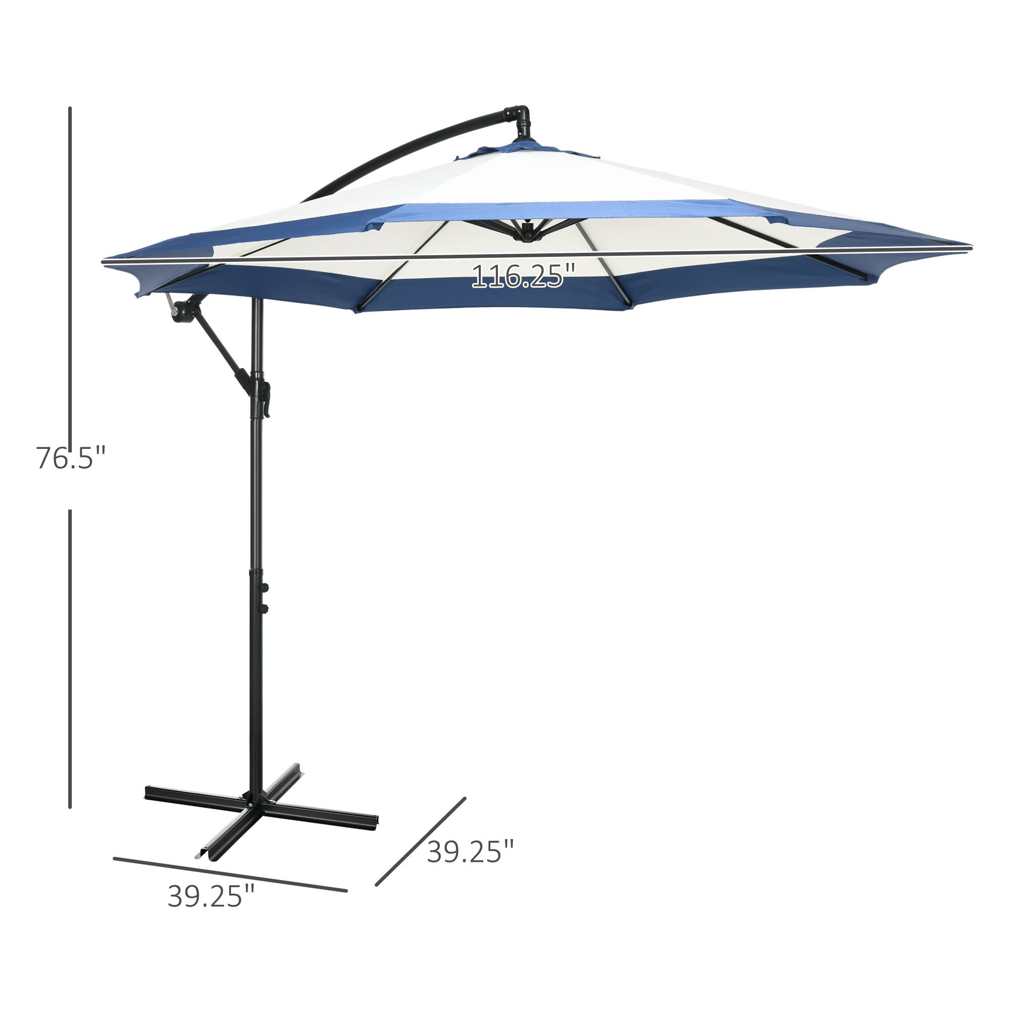 Need shade but nowhere to mount an umbrella? A cantilever umbrella lets you get creative. Use it for your existing outdoor couch, pool chairs, or dining set. Say goodbye to sunburns this summer with Outsunny. Blocking UV is easy; simply crank the handle open, and you have your own personal canopy. A great pair for other Outsunny patio products, you can start planning your personal oasis. Get out, get comfy, get Outsunny.