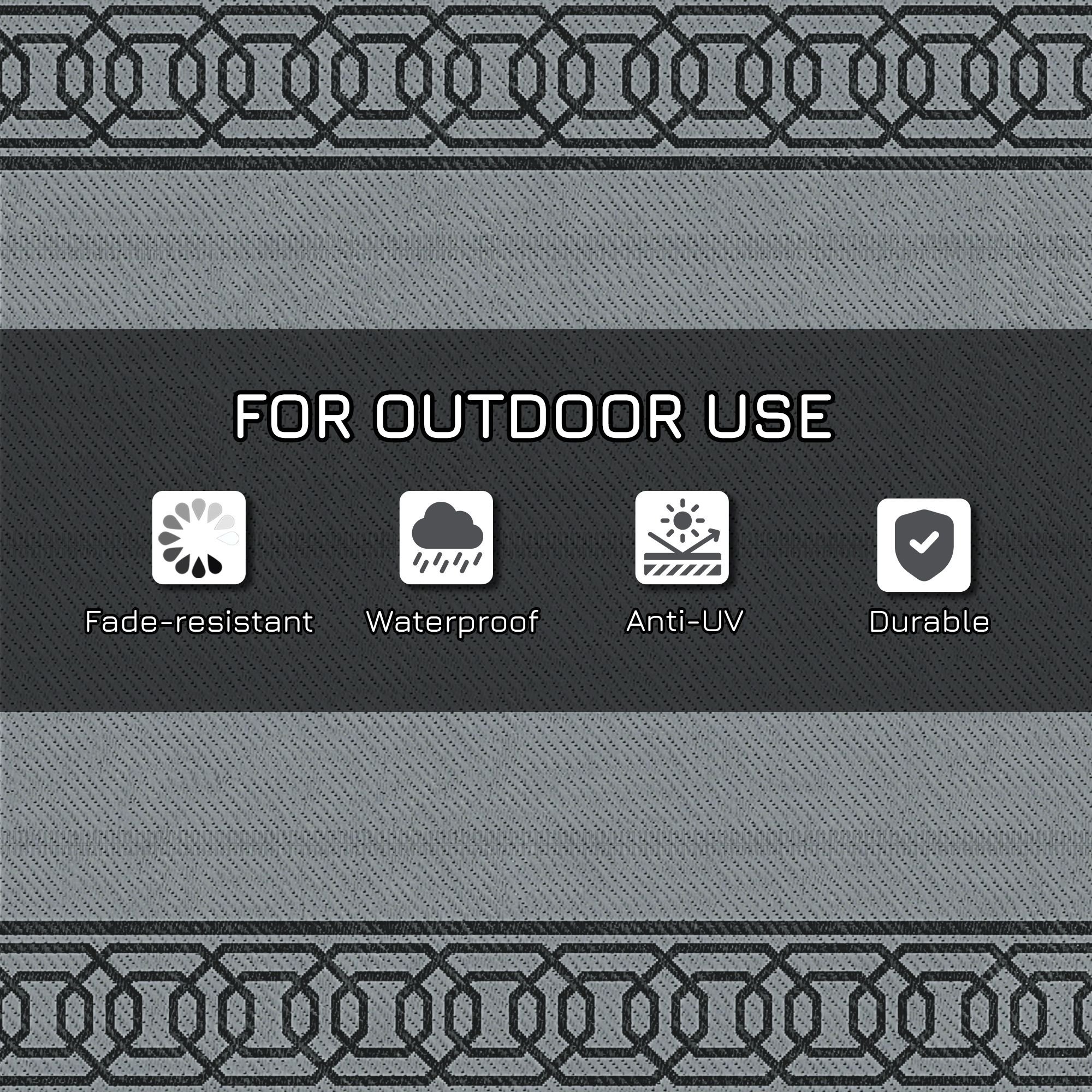 Plastic Outdoor Rug: Our waterproof outdoor rug / RV mat features a reversible pattern that you can flip over for a quick, clean spot with an all new style.