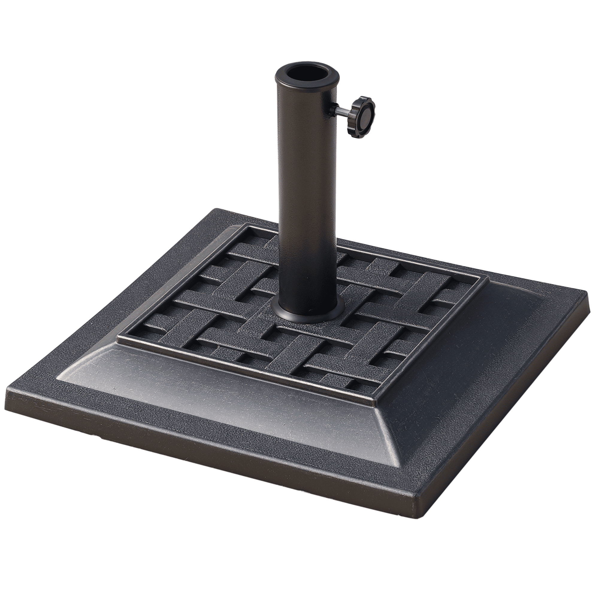 This Outsunny patio umbrella base offers a decorative, high end touch to your outdoor living space while also performing a necessary task of holding your umbrella in place. With an attractive decorative pattern and bronze finish, this outdoor umbrella stand adds charm and elegance to any patio. Made from resin, our umbrella stands for outside is rust-resistant and made to last for years.