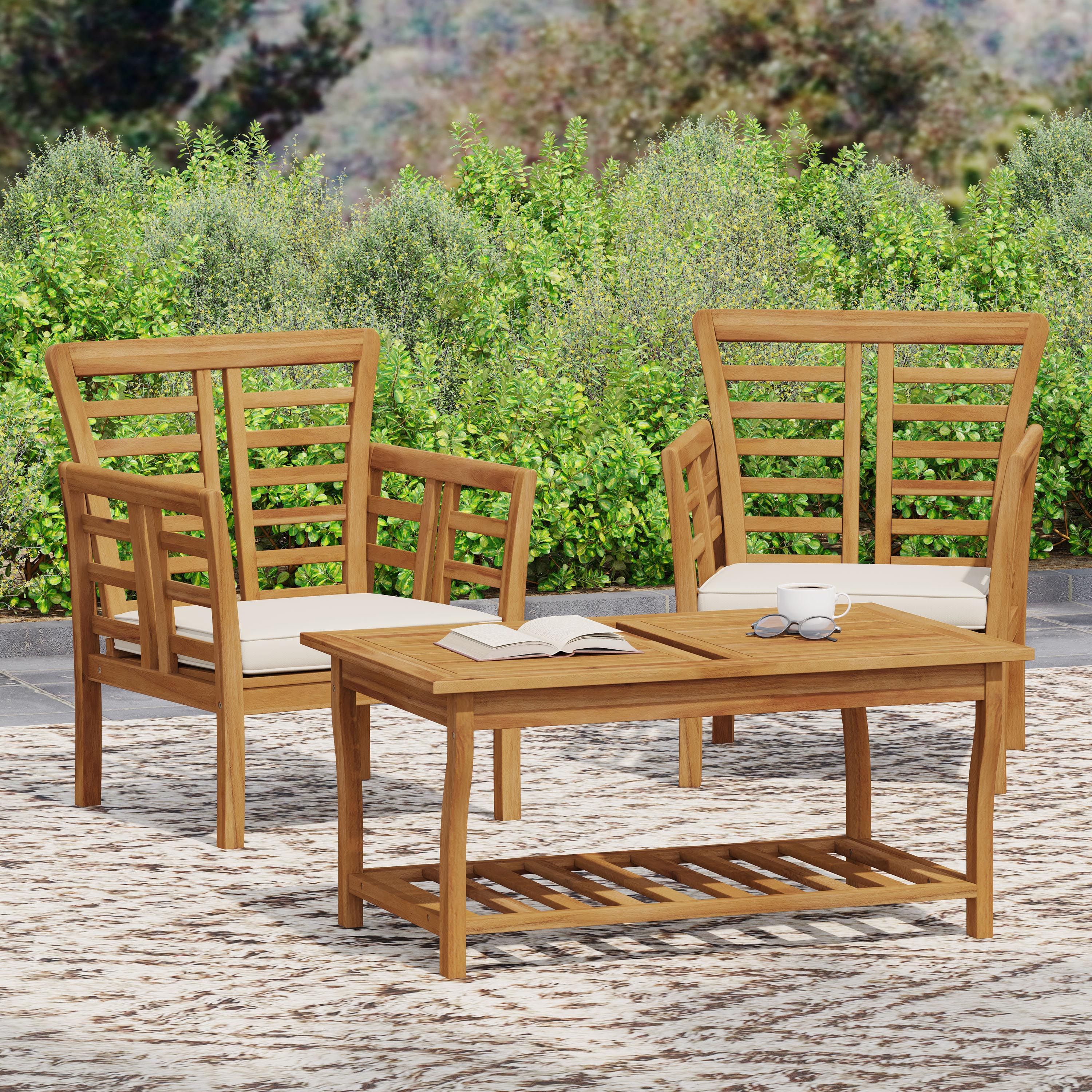 Acacia wood: This durable hardwood is a solid, heavy frame that naturally withstands the elements and resists wear and tear.