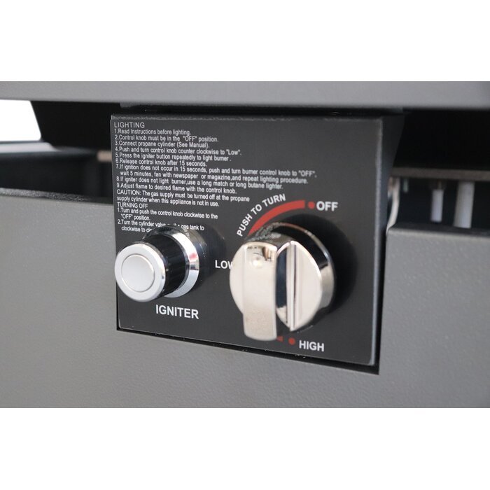 Turn any chilly evening into a cozy warm night by huddling around this fire pit. Crafted with beautiful steel construction, this fire pit is a winner when entertaining guests in your backyard and enjoying outdoor living. Access the propane tank through a hidden door compartment, as the propane tank is internal and completely hidden. The fire burns at a rate of 50,000 BTU and is suitable for year-round use.
