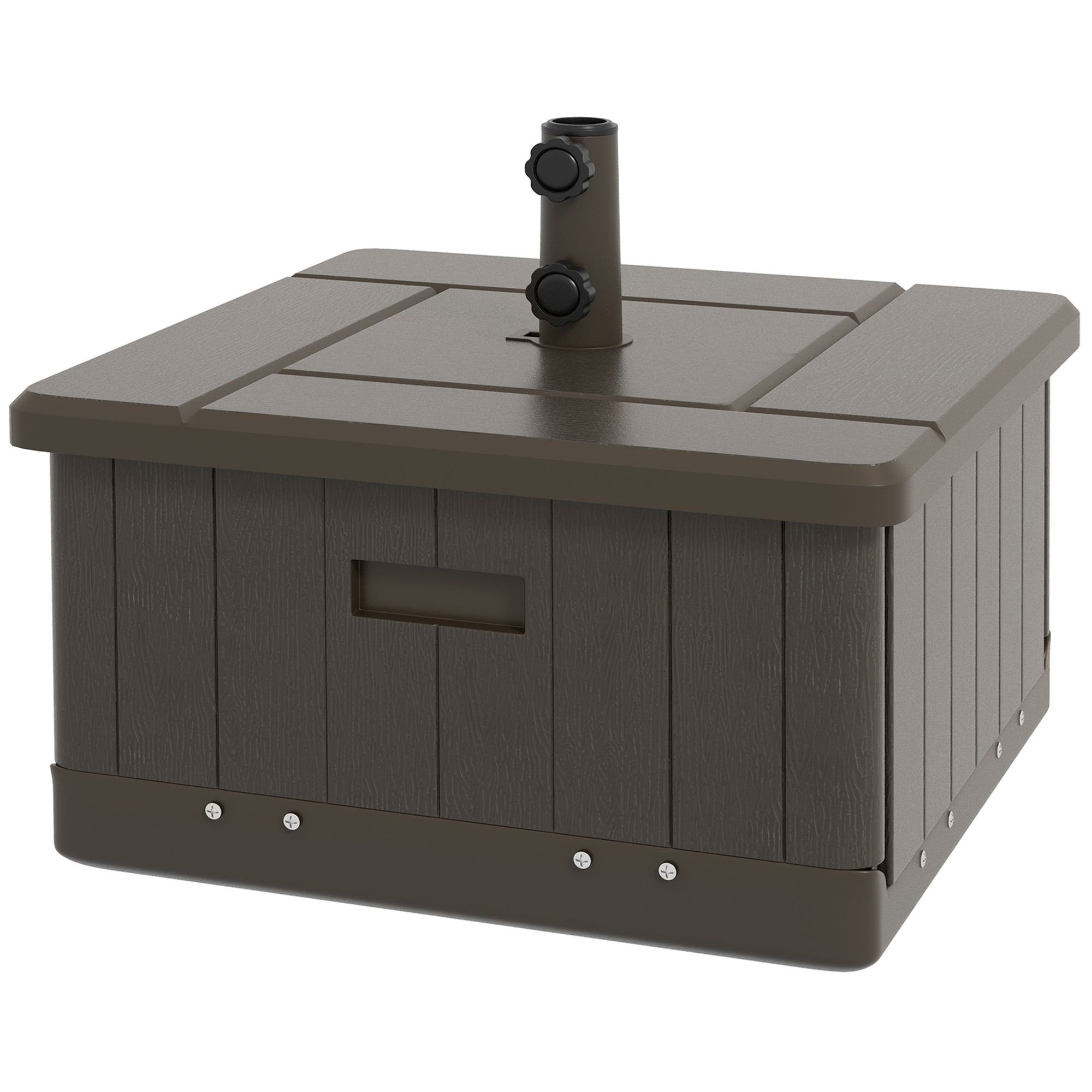 3-in-1 Outdoor Umbrella Base with Wheels and Handles, End Table, Flower Box Planter with Hole, 175 lbs. Capacity, Brown 3-in-1 Outdoor Umbrella Base with Wheels and Handles, End Table, Flower Box Planter with Hole, 175 lbs. Capacity, Brown 3-in-1 Outdoor Umbrella Base with Wheels and Handles, End Table, Flower Box Planter with Hole, 175 lbs. Capacity, Brown