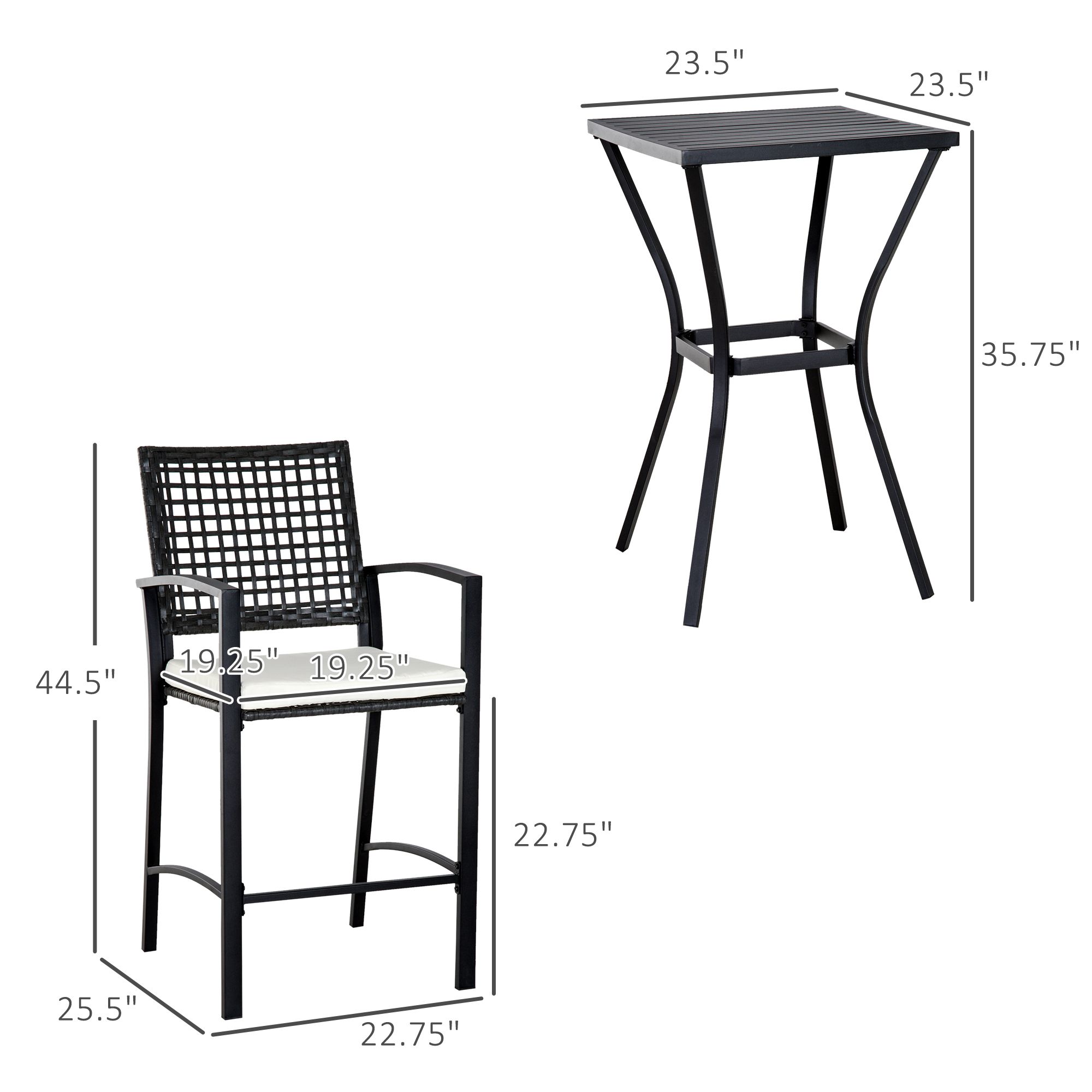 Need a practical place for parties out in the open air? Want to watch the sunrise in the backyard with your sweetheart over breakfast? Outsunny offers the bar-height patio furniture set to make it happen. With two soft cushioned PE rattan chairs and a quick draining slat table, you can place an outdoor sitting space as cozy as your favorite café. Offering all the hand-woven style of classic rattan, up your outdoor décor game with little maintenance in an all-weather package. Get out, get cozy, get Outsunny.