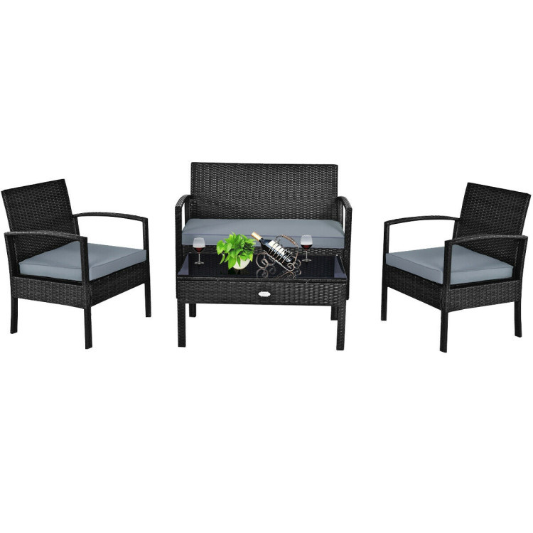 Home > 4 Pieces Patio Rattan Cushioned Furniture Set with Loveseat and Table Outdoor Conversation Sets