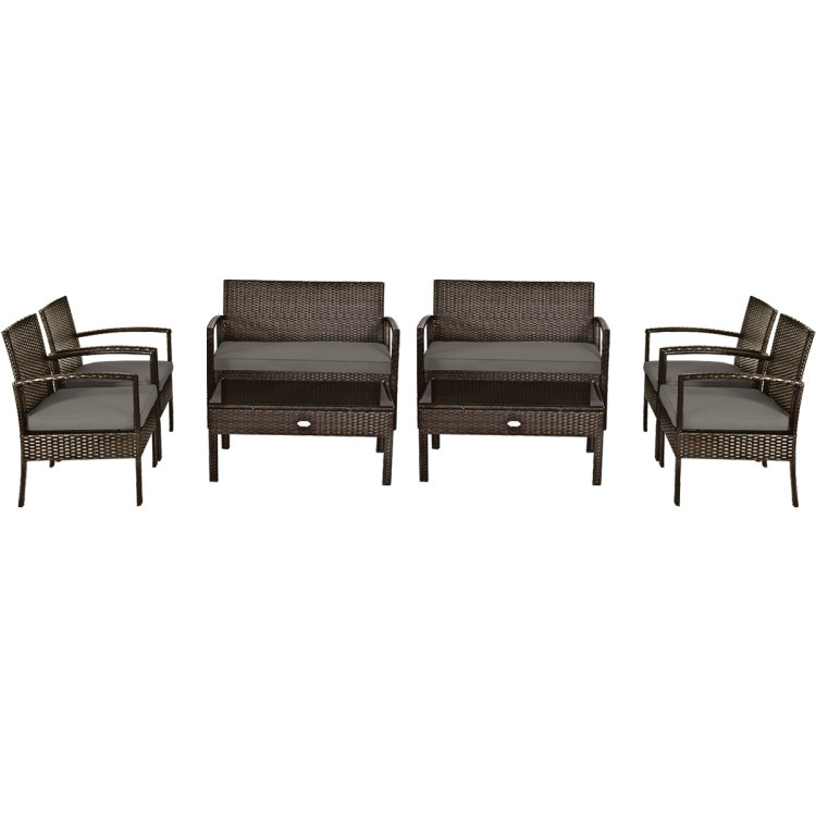 Home > 4 Pieces Patio Rattan Cushioned Furniture Set with Loveseat and Table Outdoor Conversation Sets