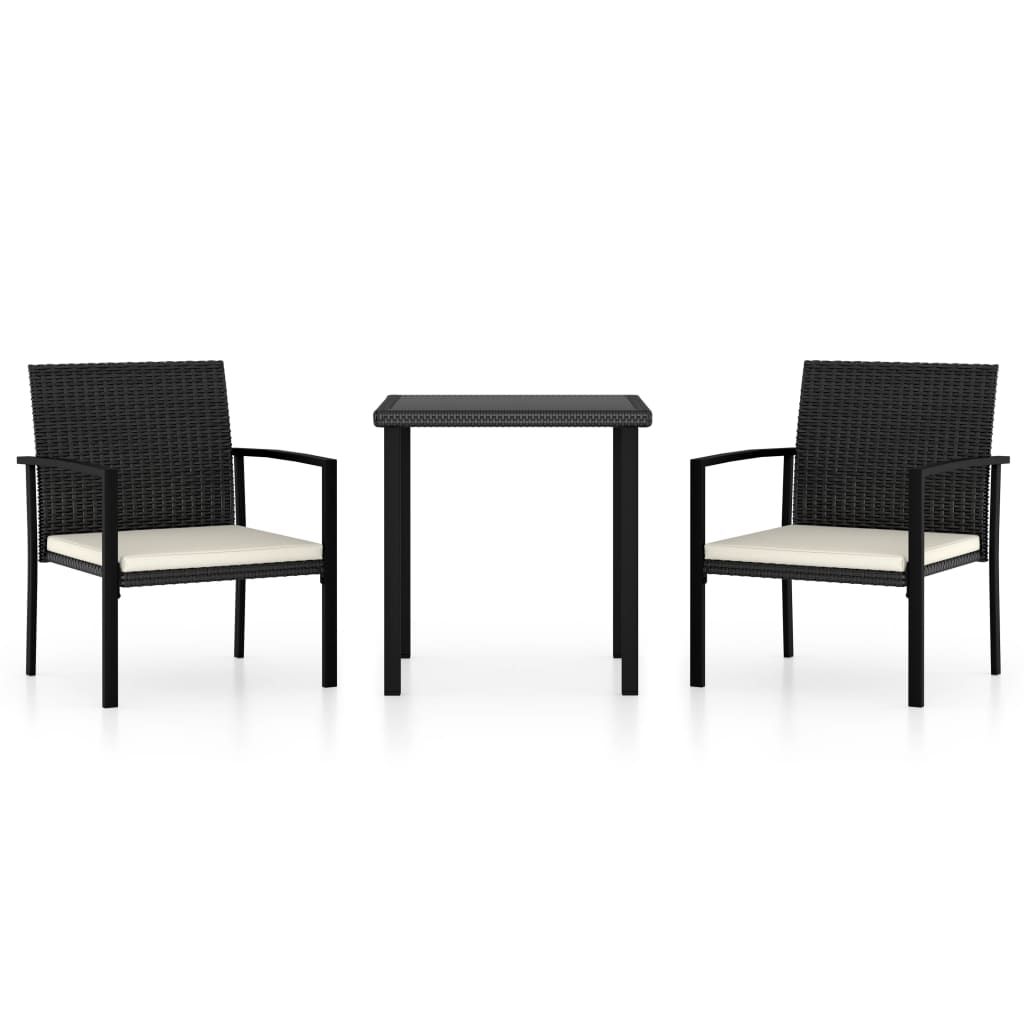 This 3-piece garden dining set combines function with a modern style, making it a top pick for balconies, patios, and terraces. With a sleek black poly rattan finish and cream cushions, this set offers a stylish and durable choice for outdoor dining and lounging, inviting you to enjoy meals or hang out in comfort.