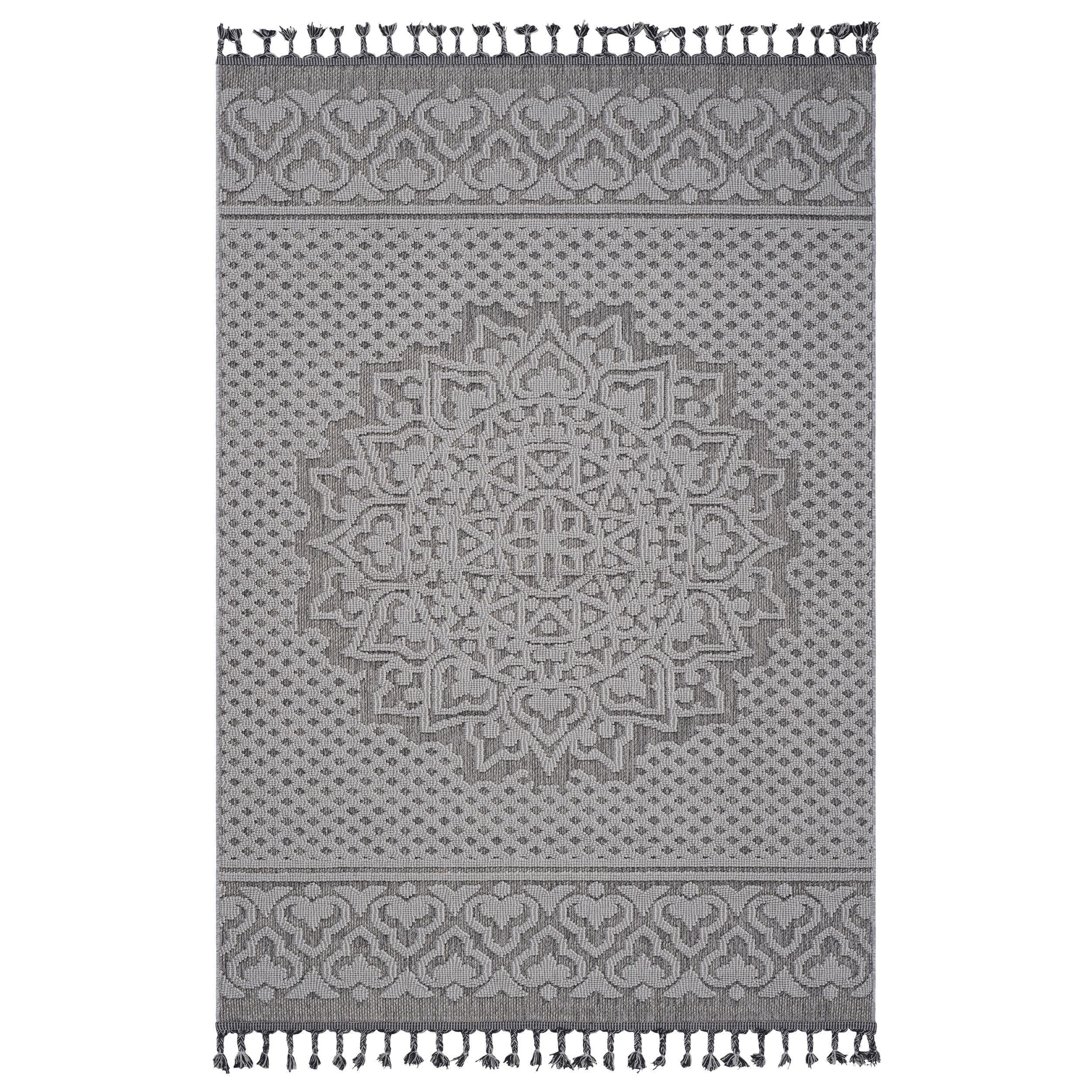 8X10 Gray/White /Medallion Indoor/Outdoor Area Rug