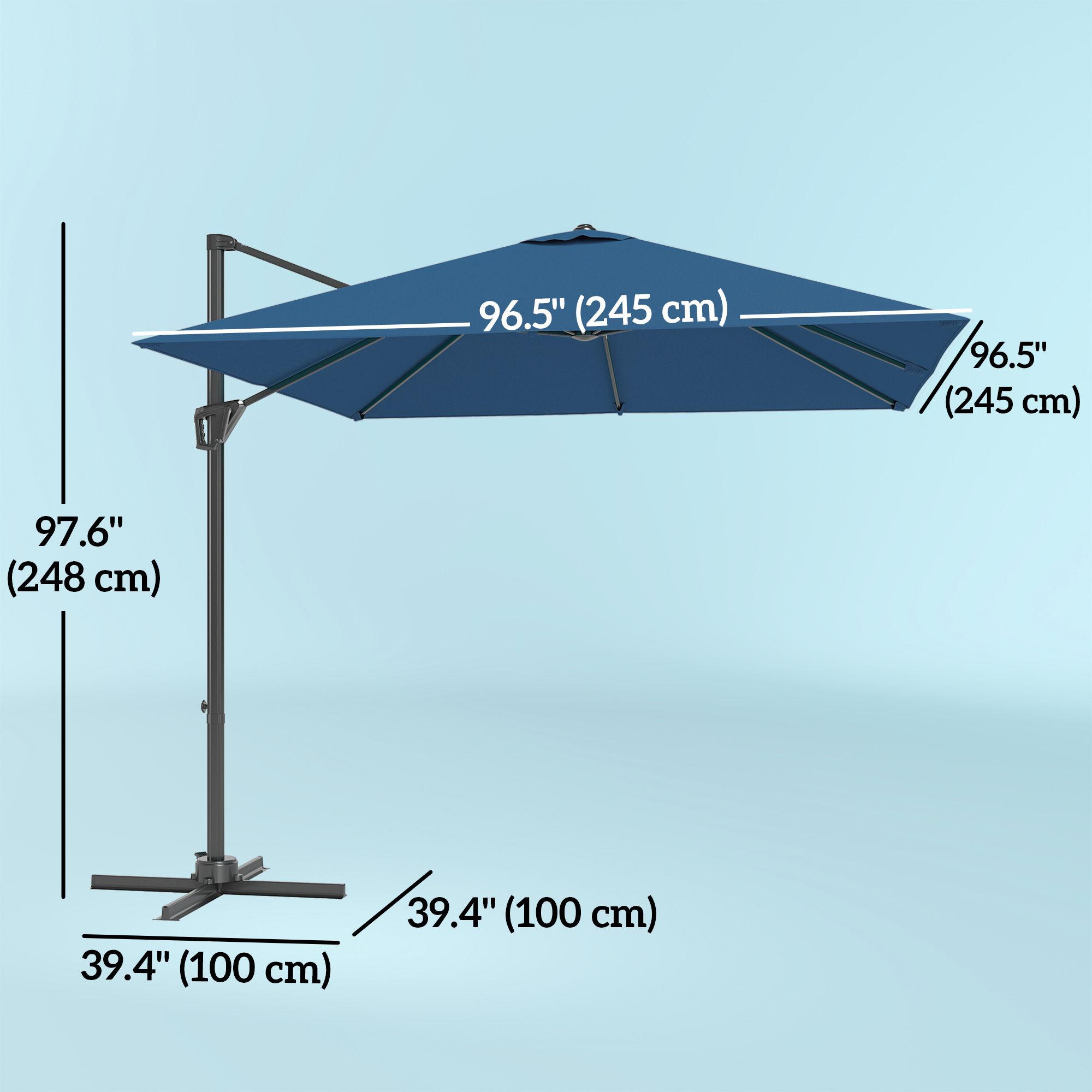 Home > 8'x8' Square Patio Hanging Offset Umbrella, Outdoor Cantilever Parasol w/ Cross Base, Navy Blue