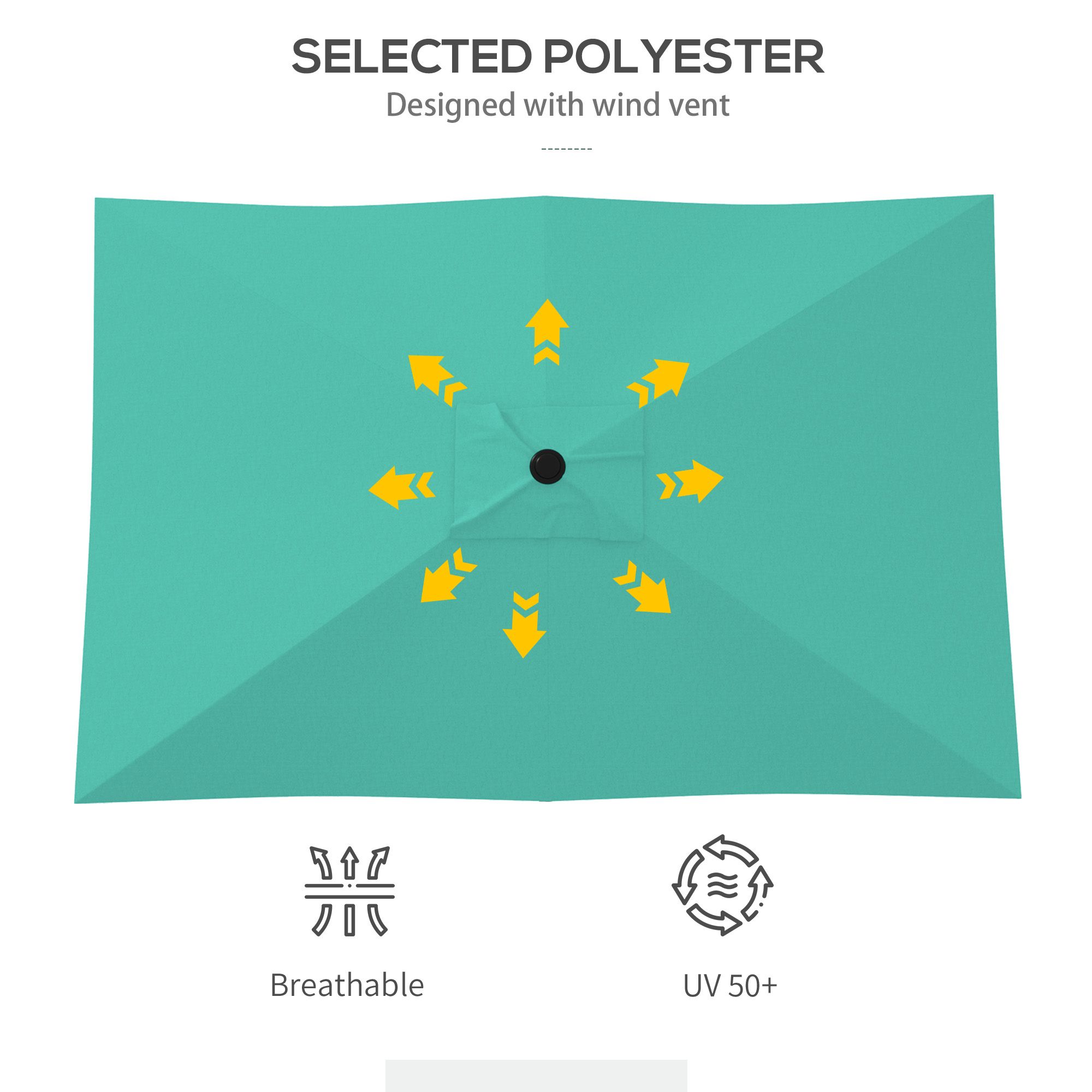 Wind-Up Parasol: A wind vent at the top of the sunbrella ensures proper ventilation allowing the umbrella to remain secure and stable on the ground.
