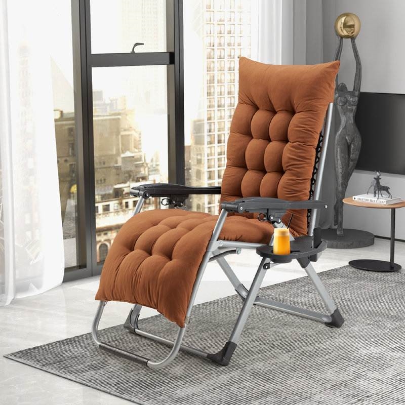 Get summer ready with this Plush Brown Folding Zero Gravity Recliner w/ Removable Cushion. Select the optimal angle that brings ultimate comfort and relaxation. Convenient to lay back for a nap when lounge recline flat, or have a great reading time when. 3.7 inch thick cushions. Covered with strong synthetic fibers, breathable and quick-drying. This reclining lounge chair is constructed of rust and weather resistant thickened carbon steel tube, UV-resistant, 800D Premium Textile Fabric, widened seat, can support up to 440lbs.