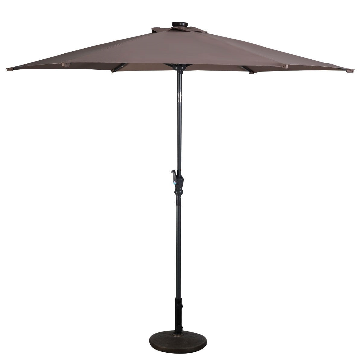 • Tan 9-Ft Patio Umbrella with Steel Pole Crank Tilt and Solar LED Lights
