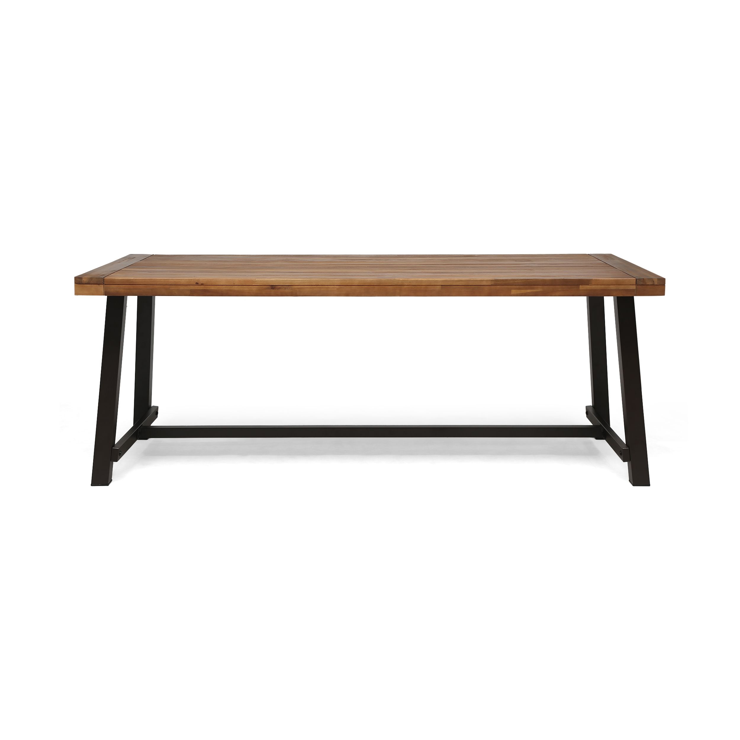 Acacia wood enhances this dining table's elegance and durability and allows it to withstand various outdoor environments. The metal frame provides better support.