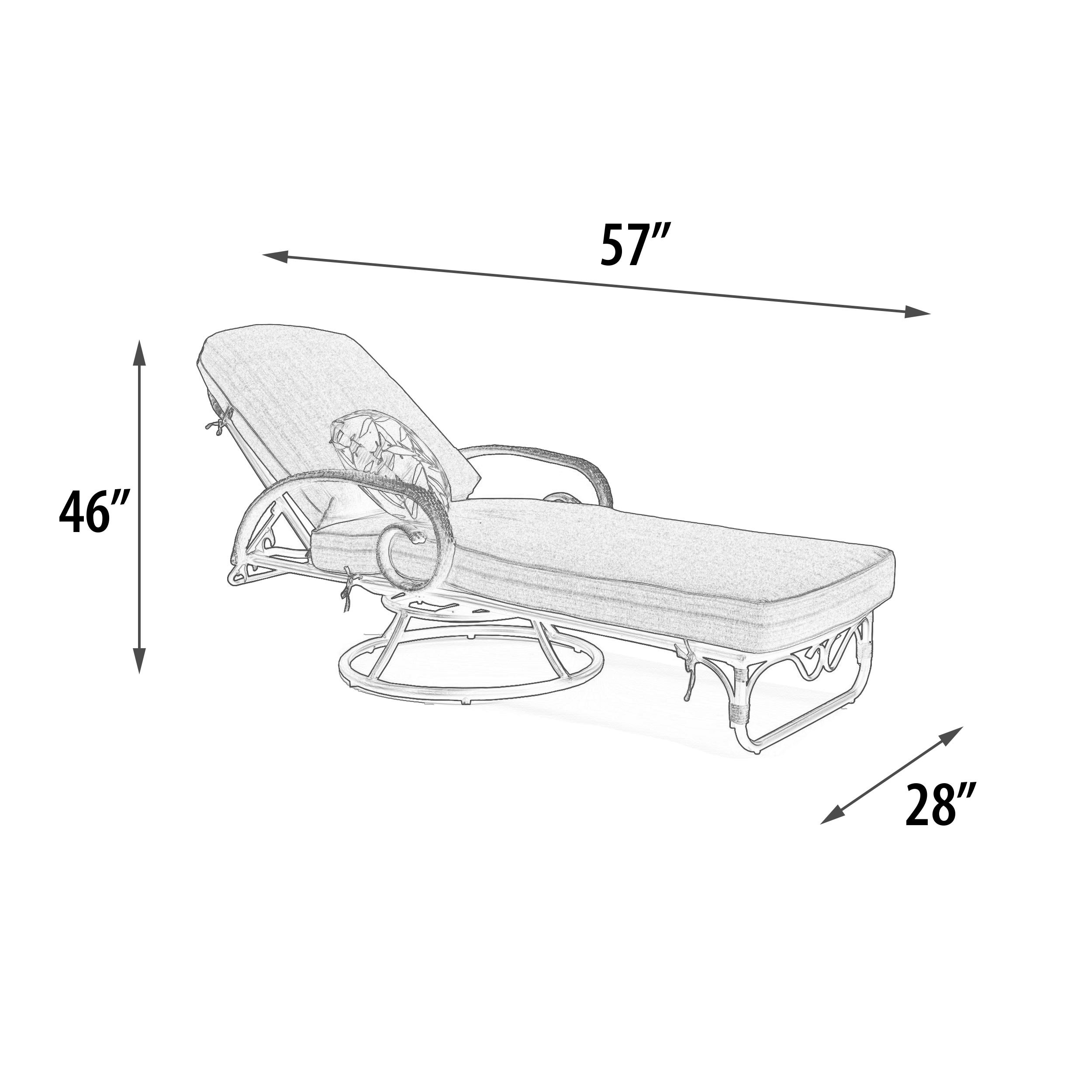 Introducing the Patented 360 Degree Swivel Chaise Lounge from Bridgeton Moore's Grand Bonaire Weave Collection. Experience unparalleled comfort and versatility with this innovative addition to your outdoor space. Designed for effortless relaxation, this chaise lounge boasts a smooth swivel operation and adjustable backs, allowing you to find your ideal lounging position with ease. Crafted with meticulous attention to detail, the chaise features a 100% aluminum frame that is fully welded for lasting stability and resistance to rust. The Grand Bonaire Weave Collection embodies the fusion of indoor luxury and outdoor durability, showcasing a beautiful cast aluminum design complemented by intricate hand weaving. Scrolling elements, finished in a rich brown bronzed tone, accentuate the elegant details, while a multistep powder coat finish ensures long-lasting outdoor resilience. Each chaise lounge comes complete with plush seat and back cushions, upholstered in soft beige linen Sunbrella Brand fabric. Quick-drying cushion core ensures comfort and convenience, while a designer-selected accent pillow adds a touch of sophistication. Backed by Bridgeton Moore's commitment to quality, this chaise lounge is covered by a 3-year warranty on all frames and finishes, with Sunbrella grade fabrics protected for 2 years against manufacturing defects and fading. Please note that proper care is essential for outdoor furniture longevity. We recommend using covers for year-round outdoor exposure, especially in coastal areas. Simple maintenance, such as hosing down or rinsing off salt exposure, will help protect and extend the lounger's beautiful finish. Some assembly is required. Sold separately but often ordered in pairs for groupings. Elevate your outdoor living experience with the Grand Bonaire Weave Swivel Chaise Lounge. Explore the Grand Bonaire Weave Collection today and transform your outdoor space into a luxurious retreat.