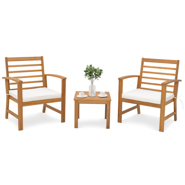 This 3-piece patio wood furniture set in original wood color brings natural feelings to the surroundings. Such an elegant appearance will make you enjoy more during relaxing outdoors.
