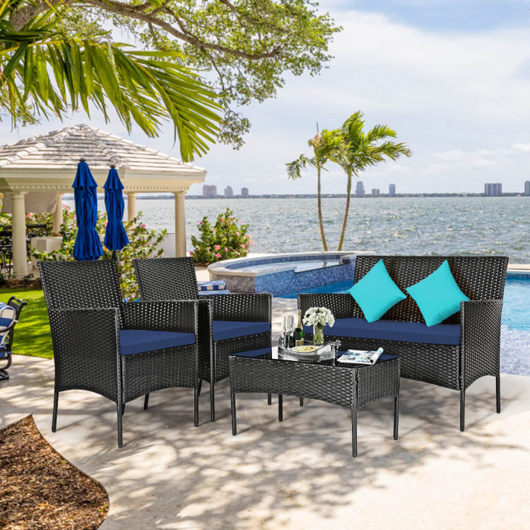4 Pieces Patio Rattan Cushioned Sofa Set with Tempered Glass Coffee Table 4 Pieces Patio Rattan Cushioned Sofa Set with Tempered Glass Coffee Table 4 Pieces Patio Rattan Cushioned Sofa Set with Tempered Glass Coffee Table