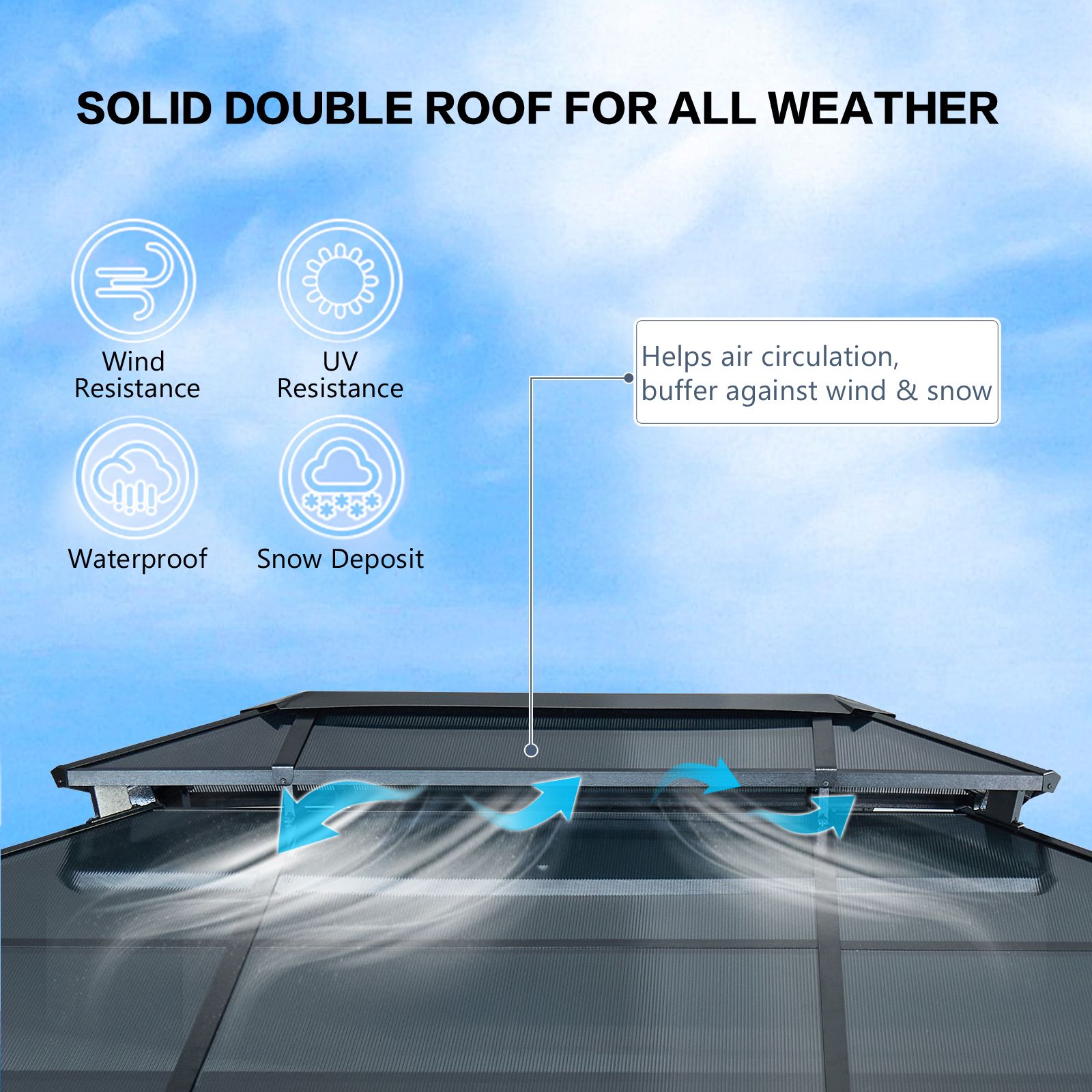 ●  Double-Layered Roof: Features a double-layer gray PE board top for UV protection, breathability, and light penetration, ensuring comfort underneath.