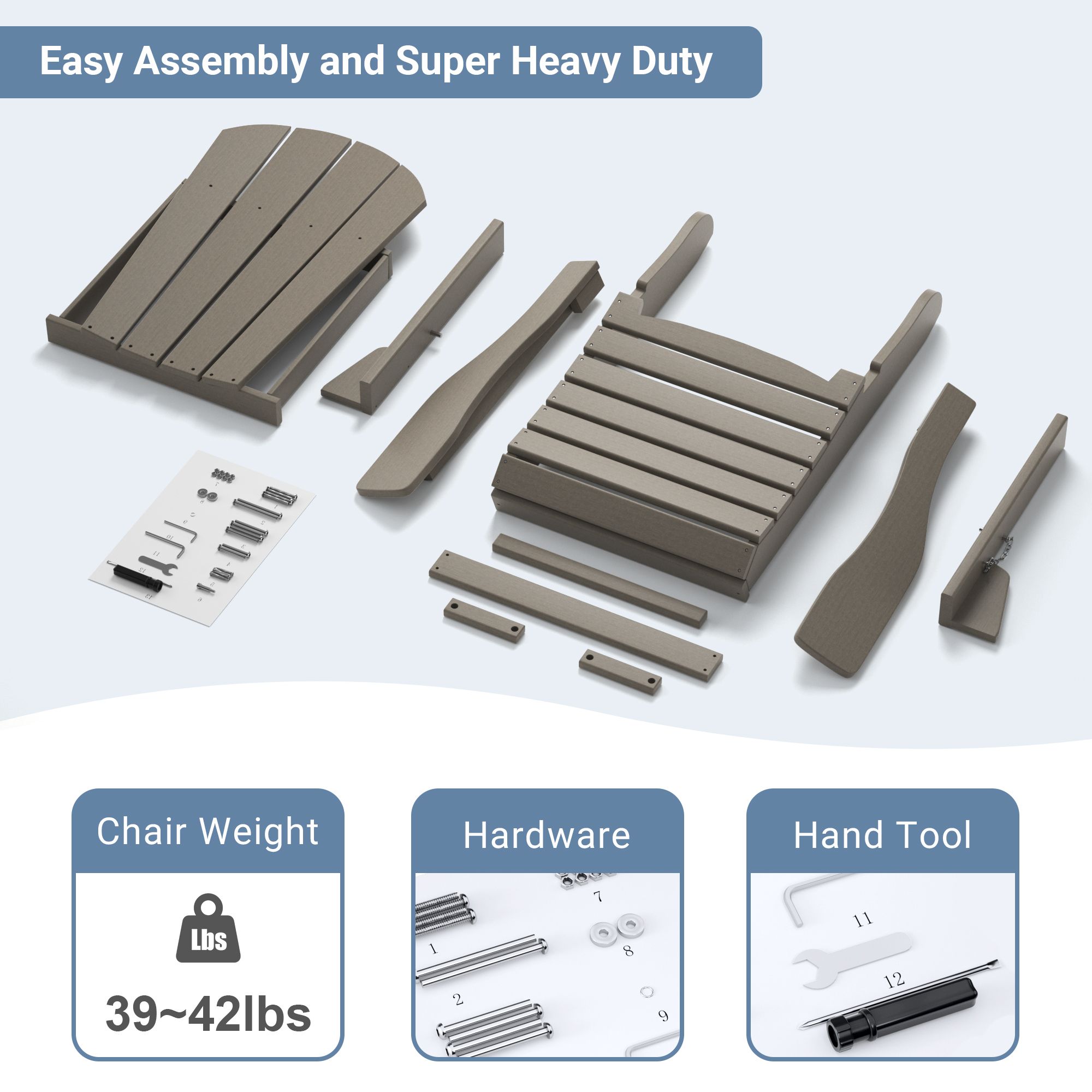 4.[Heavy Duty and Super Sturdy Chair] The HDPE material is heavy duty and it may be heavier than a soft wood chair. The weight is around 8-9 lbs for each chair. It will not blow over in high winds.The wide arms and comfy lounging backrest make the Adirondack lawn chairs adorable and super comfortable.