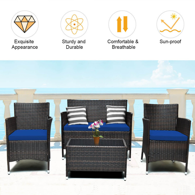Home > 4 Pieces Comfortable Outdoor Rattan Sofa Set with Table