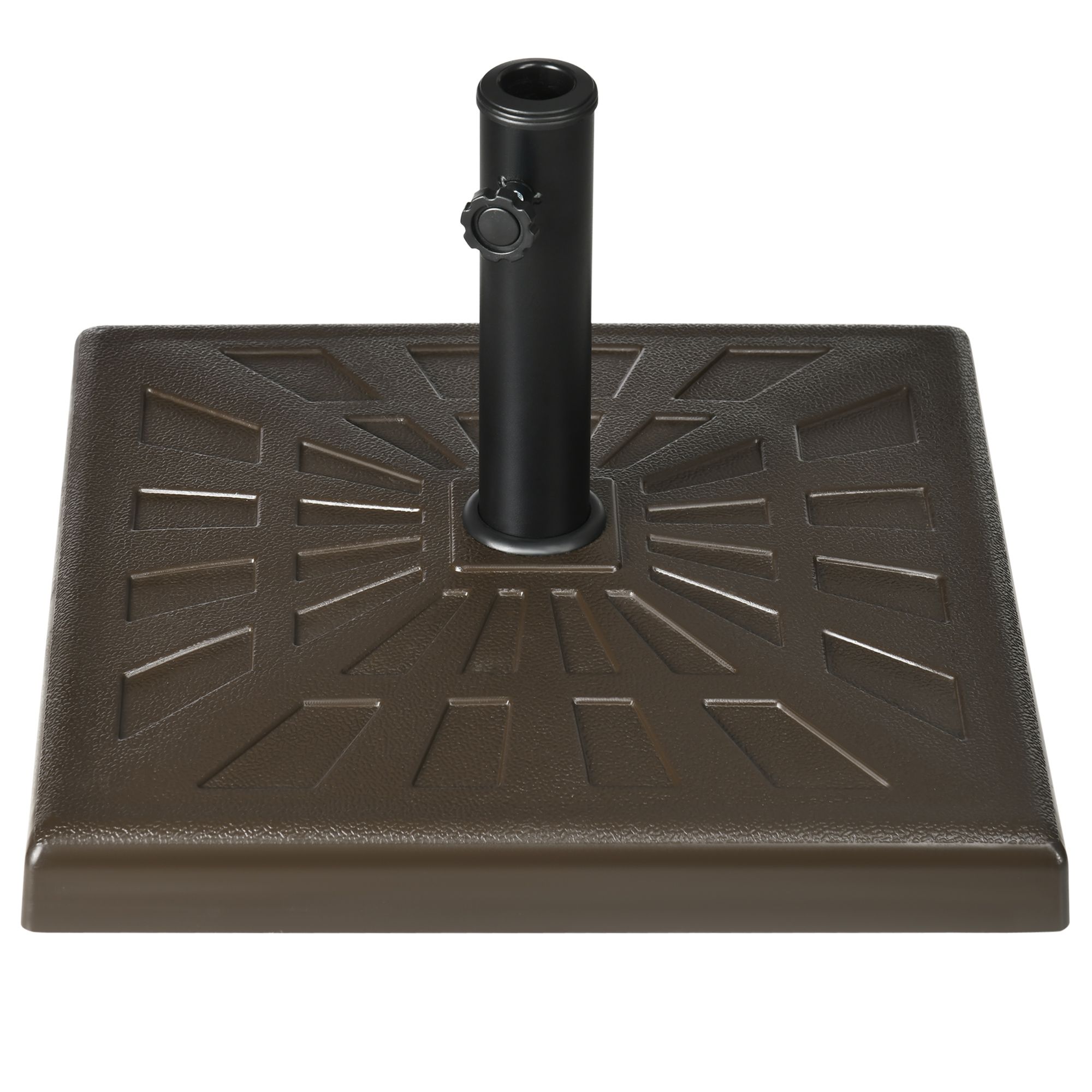 Outsunny has a patio umbrella stand that will help you do just that, make your umbrella stand. Sit comfortably out on the porch or patio without worrying about your parasol having a fall. Weighted, outdoor-ready, yet still stylish, it provides 42 lbs. of support from resin-protected cast iron with a sleek, and modern presentation. If your umbrella pole isn't a perfect fit, that's okay it adjusts to allow for a snug fit using the knob on the side. Create your own oasis with Outsunny.