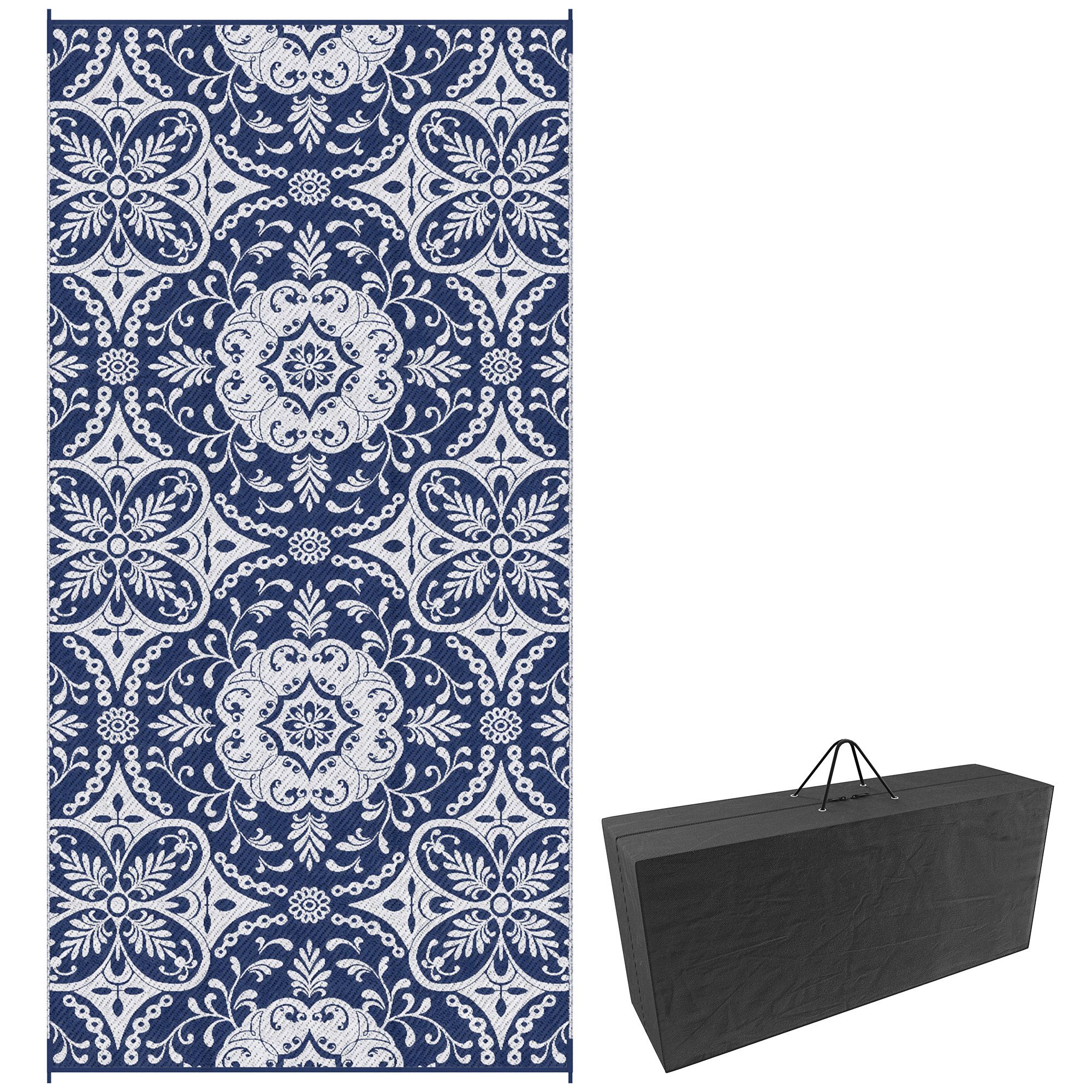 Camp on a carpet with Outsunny. This porch rug is designed to handle dirt. Outdoor-ready, our rug really cleans up fast; sweep, spray, wipe, or wave it; its powerful polypropylene fibers stay dry and don't saturate. Keep an outdoor rug in the camper, RV, or car; it's excellent for camping, beach trips, patio picnics, or anywhere outside. The color is reversible, meaning you can flip our plastic rug over for a fresh side or style. Upholster the outdoors with Outsunny.