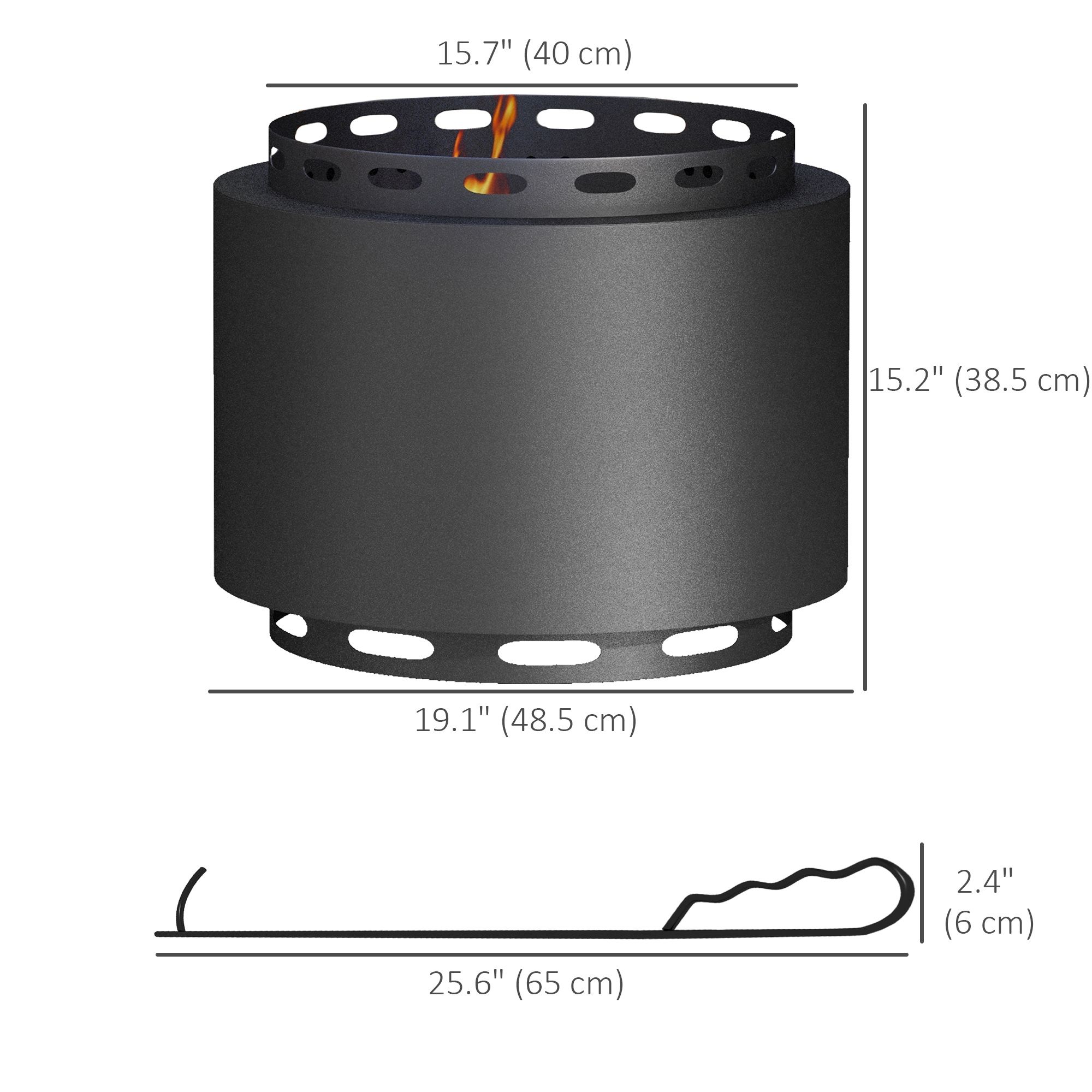 Smokeless Fire Pit, Portable Wood Burning Firepit with Poker for Garden Camping Bonfire Party, Metal, Black